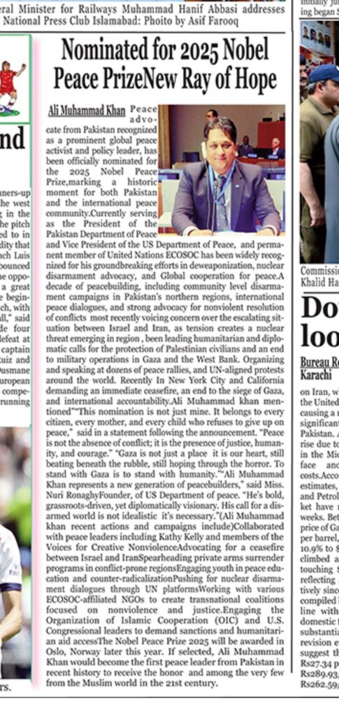 The world we are living is vulnerable to mania, social Injustice, religious intolerance and cultural ethnicity. The frantic rise of hate crimes, religious and social conflicts has paradigm the accelerating apprehensions causing disrupted Peace Prosperity. It is estimated that in the last century approximately 120 million people lost their lives due to wars, conflicts and Injustice. Only we can make a difference by advocating peace, enforcing social and peace reforms and procure peace Education.